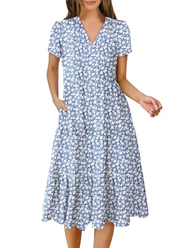 ANRABESS Women’s Summer Casual Short Sleeve V Neck Midi Dresses 2025 Spring Flowy A-line Tiered T Shirts Boho Beach Dress Floral Blue Small –