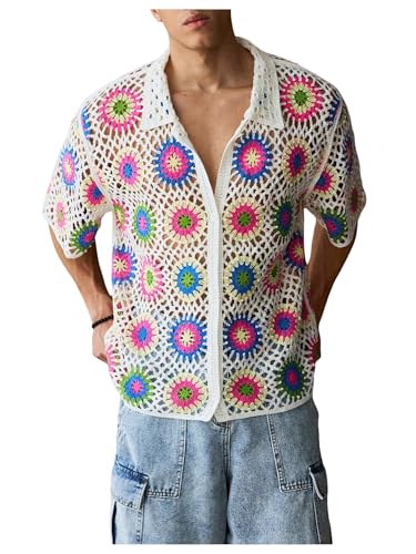Be the first to review “BEAUDRM Men’s Striped Knit Shirts Short Sleeve Button Down Shirt Crochet Hollow Out Summer Beach Top Vintage Vacation Wear White and Pink X-Large –”