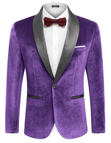 COOFANDY Men Casual Blazer Velvet Shawl Lapel Jacket One Button Suit Jackets for Dinner Prom Party Wedding Purple –