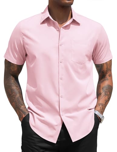 COOFANDY Men Dress Shirt Summer Evening Regular Fit Polyester Stretchy Button Down Shirts with Chest Pockets Pink XXXXXL 5XL –