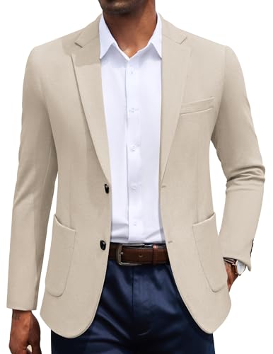 COOFANDY Mens Casual Blazer Slim Fit Sport Coat Casual Stretch Knit Sports Jackets, Light Khaki, M –