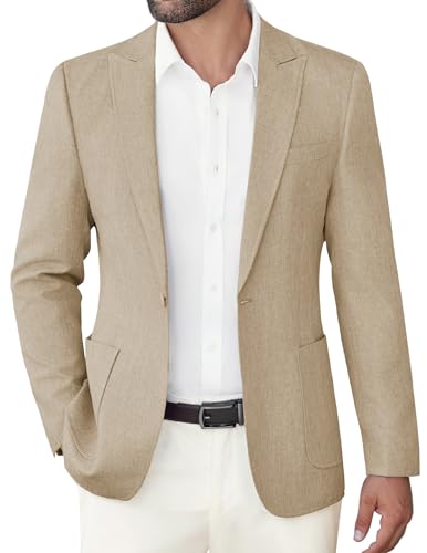 COOFANDY Men’s Casual Blazer Suit Jackets Slim Fit One Button Sports Coat with Pockets Light Khaki –