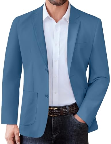 COOFANDY Men’s Casual Summer Jackets Lightweight Linen Sport Coat Two Button Cotton Blazer Blue –