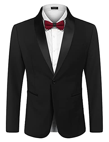 COOFANDY Men’s Tuxedo Jacket Wedding Blazer One Button Dress Suit for Dinner Prom Party Black –