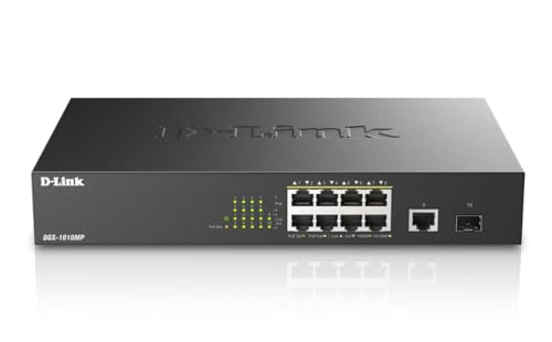 D-Link PoE Switch, 8 10 Port Unmanaged w/ 1 Gigabit Ethernet Port & 1 SFP Uplink Port, 125W PoE Budget Fanless Rackmount Plug N Play (DGS-1010MP), Black –