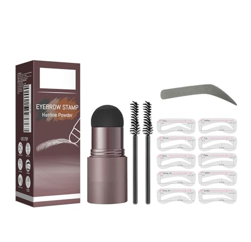Eyebrow Stamp Stencil Set,Lazy Eyebrow Filling Makeup Eyebrow Cake,Waterproof Brow Stamp Shaping Kit Eye Brow Definer,10 Reusable Eyebrow Stencils, 2 Brushe (Dark Grey) –