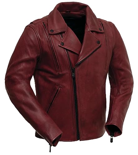 First Mfg Co – Night Rider – Men’s Motorcycle Biker Riding Oxblood Leather Jacket – 4X Large – Action Back Armor Pockets Gussets Grommets Vented –