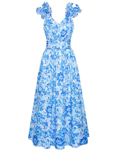 GRACE KARIN 2025 Women’s Summer Floral Print Dress Sleeveless Casual Flowy Sundress A Line Ruffle Wedding Guest Outfit Blue Floral M –