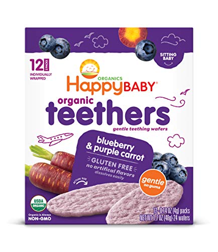 Happy Baby Gentle Teethers Organic Teething Wafers Blueberry Purple Carrot, 0.14 Ounce Packets (Box of 12) Soothing Rice Cookies for Teething Babies Dissolves Easily, Gluten Free No Artificial Flavor – AmaSync Store