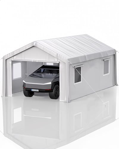 Hipicute 10′ x 20’x 10′ Portable Garage, Heavy Duty Carport with 180G Side Walls, Front and Rear Doors, Car Shelter for Trucks, Boats, and SUVs – White –