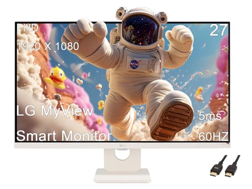 LG 27 MyView Smart Monitor, FHD IPS, WebOS 23, Built-in Speakers, ThinQ Home Dashboard, AirPlay 2, Screen Share, Bluetooth, HDR10, Flicker Safe, Reader Mode, White, with 5ave HDMI1 –