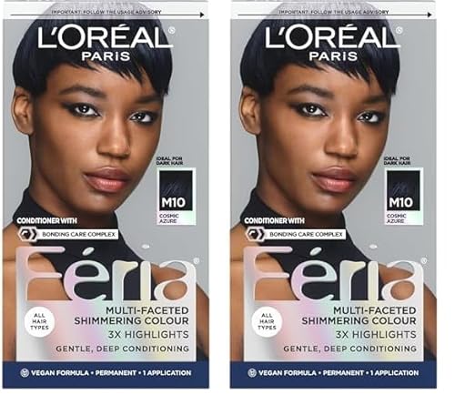 L’Oreal Paris Feria Midnight Bold Multi-Faceted Permanent Hair Dye, One-Step Hair Color Kit for Dark Hair, No Bleach Required, Cosmic Azure (Pack of 2) –