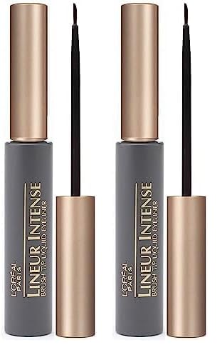 L’Oreal Paris Lineur Intense Brush Tip Liquid Eyeliner, Black, 0.24 fl; oz; (Packaging May Vary) (Pack of 2) –