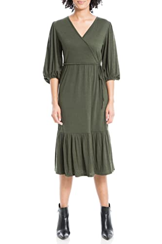 Max Studio womens Crinkled Jersey Elbow Sleeve Faux Wrap Midi Dress, Cypress, X-Small US –