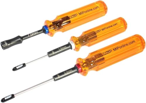 MIP RC Hex and Nut Screwdriver Set 9620 – 3-Piece Tool Kit (1.5mm, 2.0mm, 7.0mm) for RC Cars, Helicopters, Drones, Boats – Precision Hexagon Allen Wrenches and Nut Drivers for RC Repair – Made in USA –