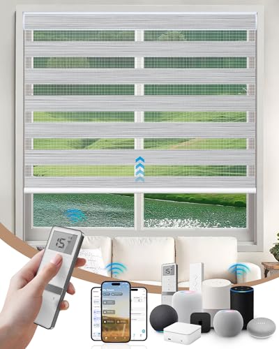 Motorized Blinds with Remote: Kincmo Motorized Zebra Blinds Work with Apple Homekit,Alexa,Google Home, Customized Electric Blinds with Remote,App,Voice Control (90% Blackout Flow Grey) –