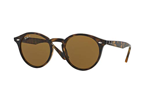 Ray-Ban RB2180 Polarized Unisex Round Sunglasses (Shiny Dark Havana Frame/Polarized Brown Lens 701/83, 49) –