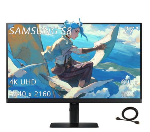 SAMSUNG 27″ ViewFinity S8 Series 4K UHD High Resolution Computer Monitor, Height Adjustable Stand, DisplayPort, HDR10, 60Hz, 5ms, HDMI, USB, Black, with HDMI Cable –