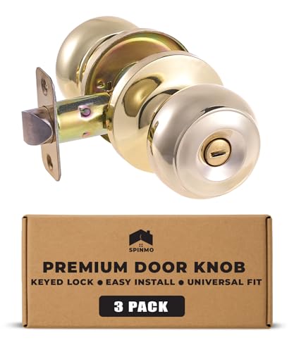 SPINMO Privacy Door Knob with Lock for Bedroom Bathroom Interior Door Handle Easy Install Room Door Locks Indoor Door Knob Set Privacy Door Handle Gold Knobs for Home Office (Gold, 3 Pack) –