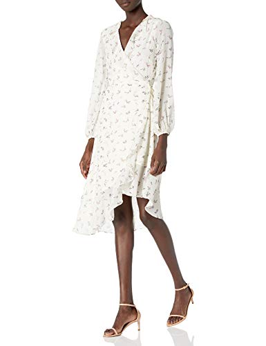 SUGARLIPS Women’s Love Bird Floral Print Midi Wrap Dress, White-Multi, Large –