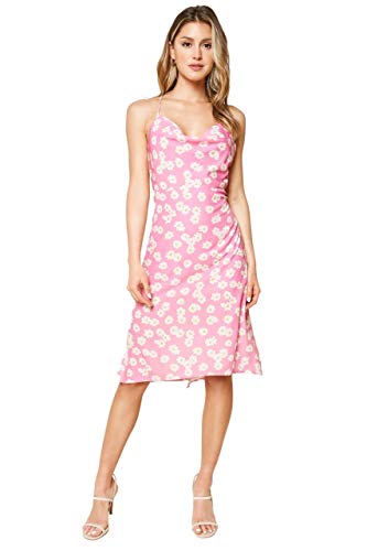 SUGARLIPS Women’s Yasmina Floral Print Cowl Neck Slip Dress, Pink-Multi, Large –