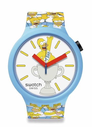 Swatch Simpsons Father’s Day Casual Watch Blue Quartz Bio-sourced BEST. DAD. EVER. –