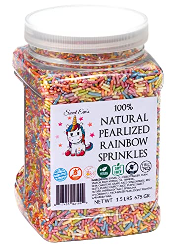 Sweet Eva’s 100percent NATURAL PEARLIZED RAINBOW SPRINKLES-Dairy Free,Nut,Gluten Free,Soy Free,Egg Free,Vegan,Kosher,Cake Decorating Jimmies,Cupcakes,Cookies,Cakes Topper,Bulk Candy,Large 1.5 LBS –