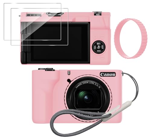 Tedubax Silicone Case for Canon PowerShot V1 with Removable Lens Cover and 2PCS Screen Protector and a Lanyard Canon PowerShot V1 case – (Pink) –